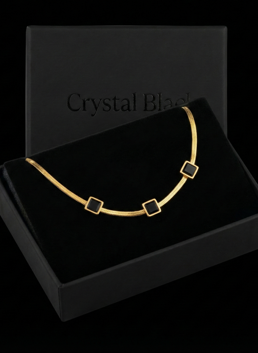A sleek anklet crafted from stainless steel with a premium PVD gold coating, accented with black square charms for a modern, minimal look.